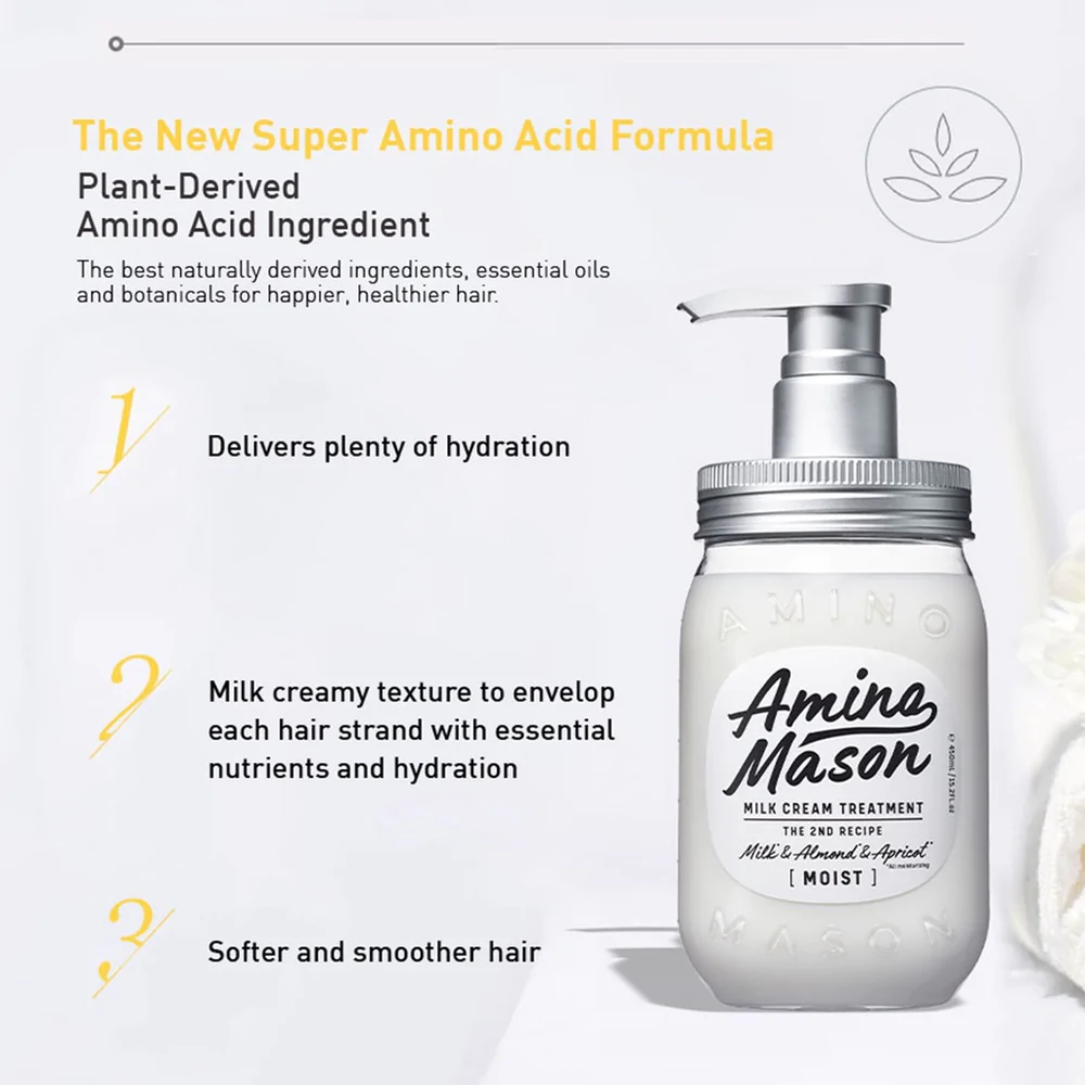 Water, cyclopentasiloxane, stearyl alcohol, cetanol, glycerin, ethylhexyl palmitate, stearoxypropyltrimonium chloride, dimethicone, hydrolyzed milk protein (milk), yogurt liquid (milk), hydrolyzed keratin (wool), almond oil, Cocoa butter, honey, avocado oil, apricot kernel oil, argania spinosa kernel oil, hydrolyzed mango juice extract, peach fruit extract, wasabi seed extract, hydrolyzed cherimoya fruit extract, raspberry fruit extract, pomegranate peel extract, hydrolyzed mangosteen fruit Extract, ceramide AP, ceramide NG, ceramide NP, hydroxypropyltrimonium hyaluronate, quaternium-33, lauroylglutamate di (phytosteryl / octyldodecyl), cyclohexane-1,4-dicarboxylic acid bisethoxydiglycol, guar hydroxypropyltrimonium Chloride, arginine, hydrogenated lecithin, polyquaternium-65, (glycerylamidoethyl methacrylate / stearyl methacrylate) copolymer, phytosterols, cholesterol (wool), distearyldimonium chloride, taurine, lysine HCl, glutamic acid, glycine, leucine, Histidine HCl, serine, valine, platinum, sodium aspartate, threonine, alanine, isoleucine, allantoin, phenylalanine, proline, tyrosine, inosine 2Na, guanylate 2Na, cocamide MEA, glyceryl stearate, BG, PG, sodium citrate, Citric acid, amodimethicone, phenoxyethanol, fragrance