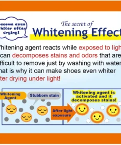Photobleaching components degrade persistent dirt and odors when washed shoes are hung out to dry in a light place